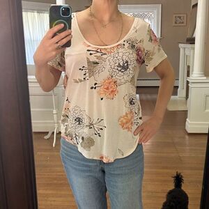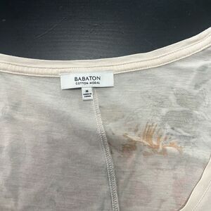 Aritzia Babaton Floral Top T-shirt Tee Peach Cream Brown Scoop Neck Size Medium
