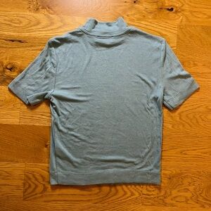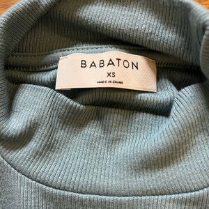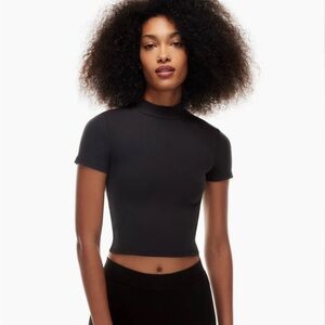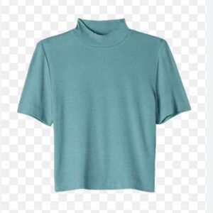 Aritzia Babaton Formarib Teal Ribbed Mockneck Short Sleeve Crop Tee