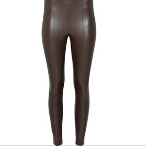 These are high-rise, skinny pants with an elastic waist. It’s made with Premium Vegan Leather from Japan, crafted for superior shape retention, easy care and an authentic look and feel.