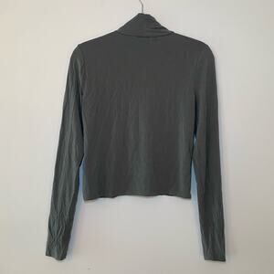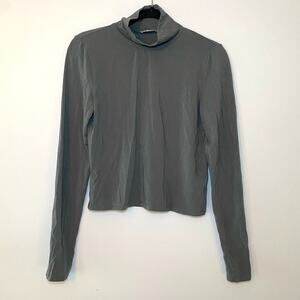 Aritzia Babaton Gray Mockneck Long Sleeve Stretchy Crop Shirt Women size Medium