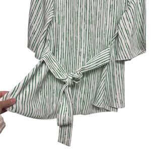 Aritzia Babaton Green White Striped Tie Waist Blouse Top Size L Flutter Sleeve