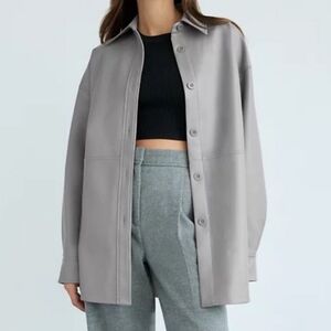 Aritzia Babaton Grey Vegan Leather Shacket Jacket Sz 2XS