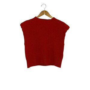 Aritzia Babaton Hazlitt Merino Wool Sweater Shoulder Pads Mock Neck Orange/Red.