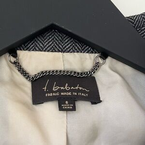 Transform your work wardrobe with this sophisticated charcoal grey blazer from BABATON. Crafted from a beautifully textured fabric, this blazer features a classic notch lapel, front button closure, and practical front pockets. Its tailored fit enhances your silhouette, making it an ideal choice for both professional settings and smart casual occasions. The blazer is in excellent likelihood new condition, ready to wear, and adds a touch of elegance to any outfit.