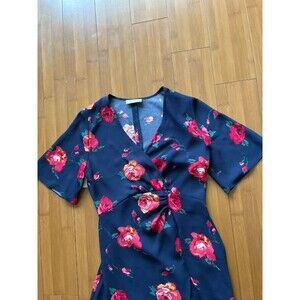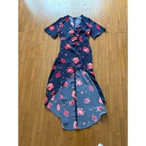 Aritzia Babaton Jedd Navy With Rose Design, High-low Hemline, Wrap Dress Sz 0 XS