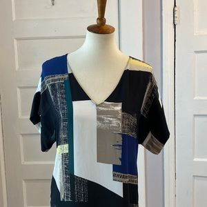 Aritzia Babaton Jessie Abstract Semi Sheer Crepe Side Slit Midi Dress. Loose fit pull-on style. Gently used.