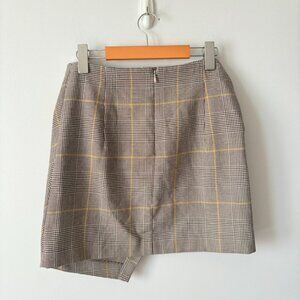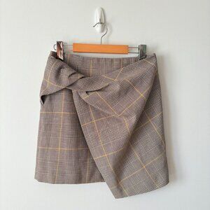 Aritzia Babaton Jethro Faux Twist Wrap Mini Skirt Brown & Gold Plaid Size 6