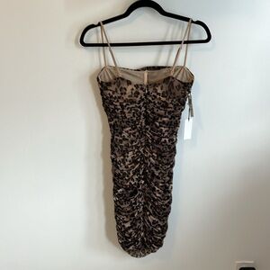 Bodycon ruched dress. Mesh like lined fabric. Adjustable straps. Stretchy. NWT