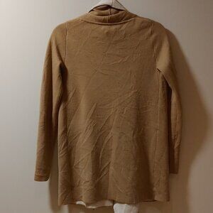 This is a relaxed open front cardigan with hand pockets and fully fashioned construction. It's knit with 91% extra-fine merino wool yarn coveted for its natural warmth and super soft feel.