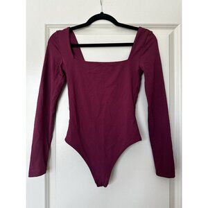 Aritzia Babaton Original Contour Squareneck Bodysuit in Maroon Size Small