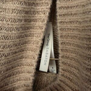 Aritzia brand, The Group by Babaton Oversized Turtleneck Beige Long-Sleeve Sweater Mini Dress. Made of alpaca wool. It is so soft and luxurious. Tagged size XS but can fit up to a medium due to oversized fit. Perfect for the fall and winter months. Belt it. Wear it with leggings, tights, or jeans. Dress it up with heels or dress it down with clogs. Versatile and staple piece. In excellent condition with no flaws to call out. No shrinkage! Was properly washed and kept.