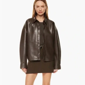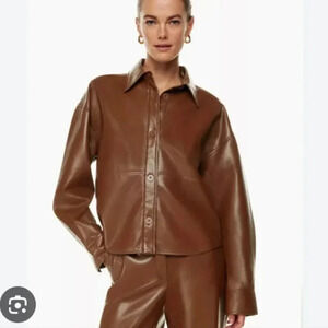 Aritzia Babaton Pelli Relaxed Vegan Leather Hip Shirt Jacket Brown Size Medium