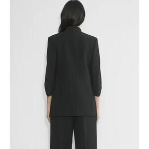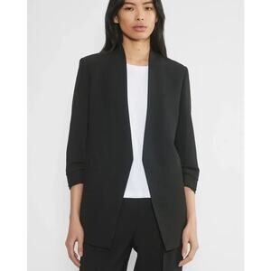Aritzia Babaton Power Hip Blazer Open Front Ruched 3/4 Sleeve Jacket Crepe Black