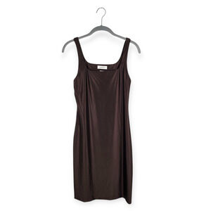 Aritzia Babaton Rich Mocha Brown Satinette Squareneck Mini Dress Sz S Bodycon