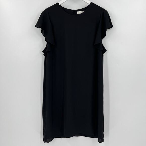 Aritzia Babaton Ruffle Short Cap Sleeves Burt Mini Shift Dress Black Size Large