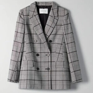 Aritzia Babaton Samuel Blazer Houndstooth Plaid Black White 00 Double Breasted