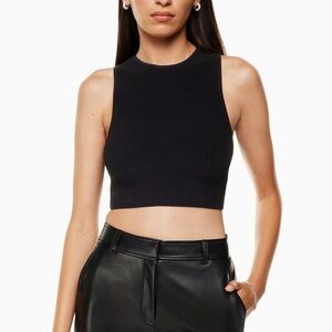 Aritzia Babaton Sculpt Knit Racer Cropped Tank Crewneck ribbed blue