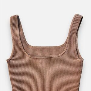 Aritzia Babaton Sculpt Ribbed Crop Tank Top Women's XS Tan Brown Scoop Neck