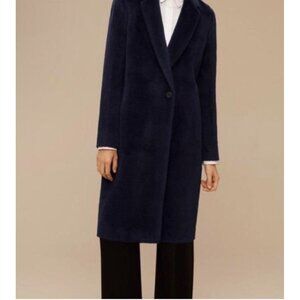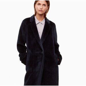 Aritzia Babaton Stedman Coat Alpaca Wool Blend Classic Longline Jacket Navy Blue