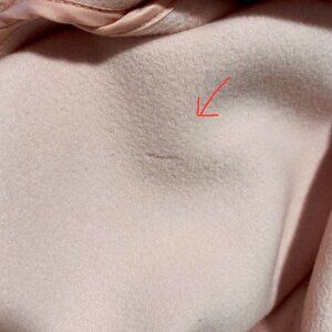 - Fabric has been damaged in 2 areas on the sleeve and on the inside of the coat (photos 6 & 7) and on the left panel of the body (photos 9 & 10)