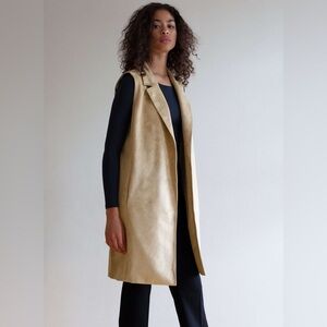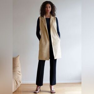 Aritzia Babaton Tan Soft Suede Look Satin Lined Long Vest Jacket Large Belt