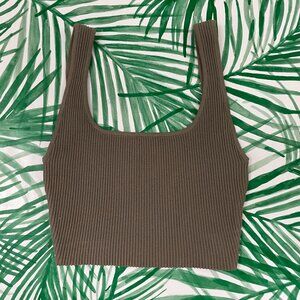 Aritzia Babaton Taupe Sculpt Knit Square Neck Crop Tank