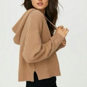 Aritzia Babaton The Group Luxe Cashmere Hoodie Sweater XS Camel Tan Quiet Luxury