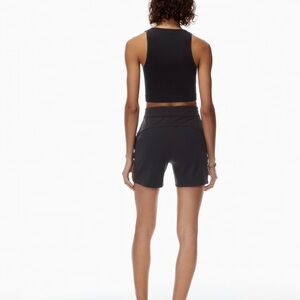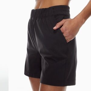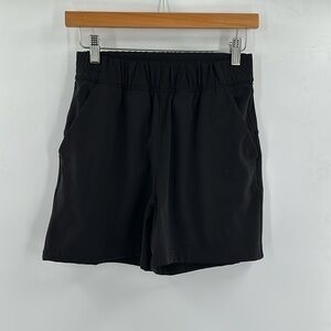For running errands or miles. These are high-rise shorts with an elastic waist and slash hand pockets. They're made with sleek ultra-stretch fabric that wicks sweat.