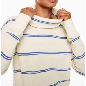 Aritzia Babaton Thermal Sweater Womens Size S Cream Blue Stripe Waffle Knit Cowl Neck