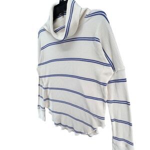 Aritzia Babaton Thermal Sweater Women S Cream Blue Striped Waffle Knit Cowl Neck