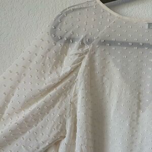 Babaton Polka Dot Silk Blend Blouse Sz L V-Neck 7/8 Sleeve Ivory