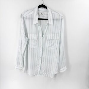 ✅Aritzia Babaton Utility Button down shirt White/BLUE Striped Button-Up Shirt LG