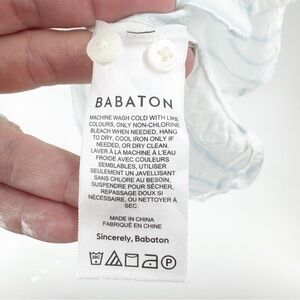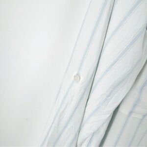 Aritzia Babaton Utility Button down shirt White/BLUE Striped Button-Up Shirt LG WITH TAB SLEEVES. EUC