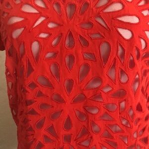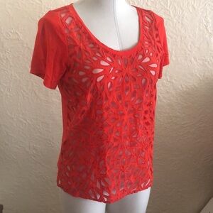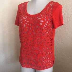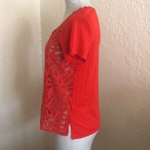 Aritzia Babaton Vermilion Red Orange Silk Mesh Cutout Top T-Shirt Blouse