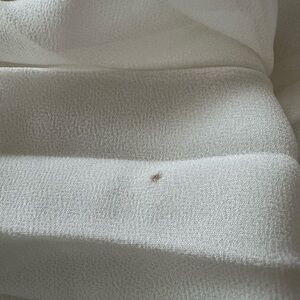 Has a tiny spot near the hem not noticeable, otherwise, in great condition