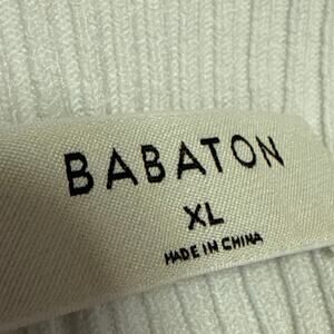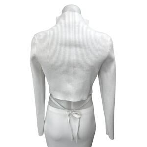 Aritzia Babaton White Rib Knit Mock Neck Crop Back Pullover Sweater Top Size XL