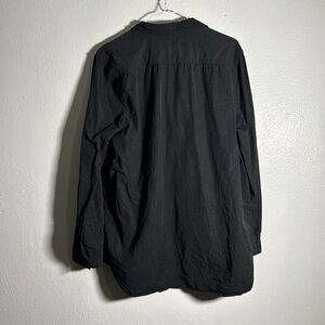 Collared, flaps on chest pockets, long sleeves, ties up sleeve to hold them in place if buttoned up.