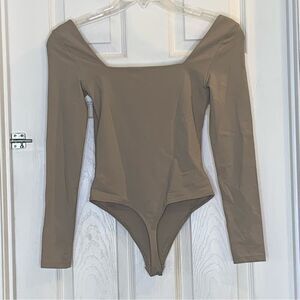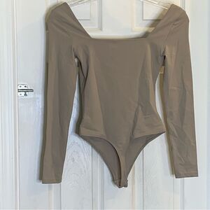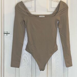 Aritzia Babaton Long Sleeved Contour Bodysuit in Taupe Size Small