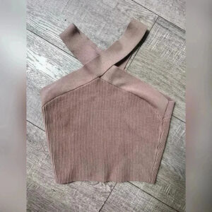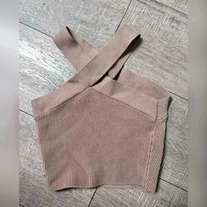 Aritzia Babaton Sculpt Knit Criss Cross Cropped Tank Taupe Size M