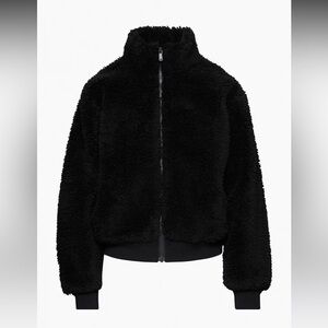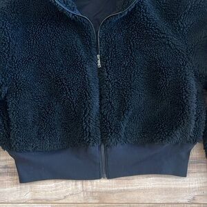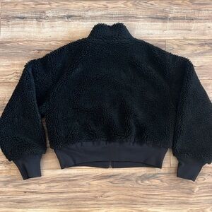 Cozy fleece jacket. High collar. Full zip closure. Perfect for layering.