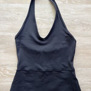 Sleek black mini dress. Halter neckline. Perfect for any occasion.
