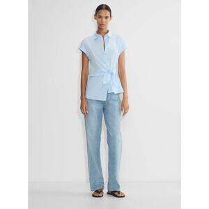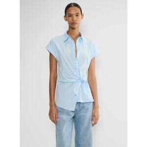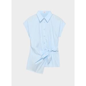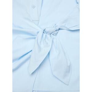 Featuring a classic button-up silhouette with cuffed sleeves and a front tie detail for a modern twist. Crafted from breathable, stretchy cotton poplin with a crisp, airy feel and smooth finish. Designed with a classic fit that offers a bit of room and hits at or below the hip. Material: 96% cotton, 4% elastane. Machine wash. Fits true to size