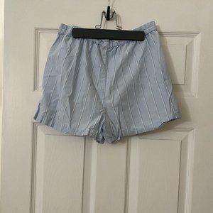 These are mid-rise boxer-like shorts with an elastic waist and inseam pockets. They're made from crisp, lightweight organic cotton poplin.
