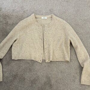 Artizia Cashmere CASHMERE RELAXED CREW CARDIGAN. Perfect condition and such a cool color (oat speckled). Slightly cropped! Great for layering or not. Can be worn buttoned up with a white t underneath or open. Also perfect to throw over your shoulders. The softest!!