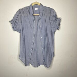 Aritzia Community Blue and White Pin Stripe The Jane Short Sleeve Button Shirt