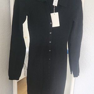 New Aritzia Wilfred Cove Sweater Dress Small Knit Long Sleeve Button Front Collar - Black