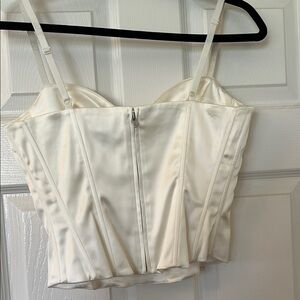 Elegant cream bustier top. Features structured cups and thin straps. Perfect for layering or wearing alone. Worn once.