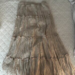 This is a lined, tiered maxi skirt with an elastic waist for easy wear. It’s cut from lightweight, drapey fabric with a crinkled texture and soft, airy feel. This fabric is made with TENCEL™ Modal.