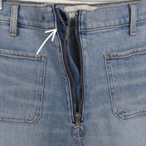 READ. There's a small section of stitching that has come undone near the zipper area. However, the zipper still works perfectly and the jeans are fully functional.