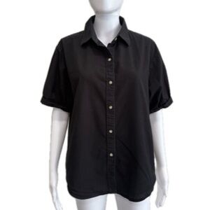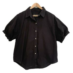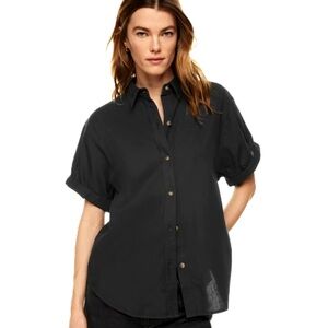 Aritzia Denim Forum Jane Shirt Size Small Solid Black Oversized Short Sleeve